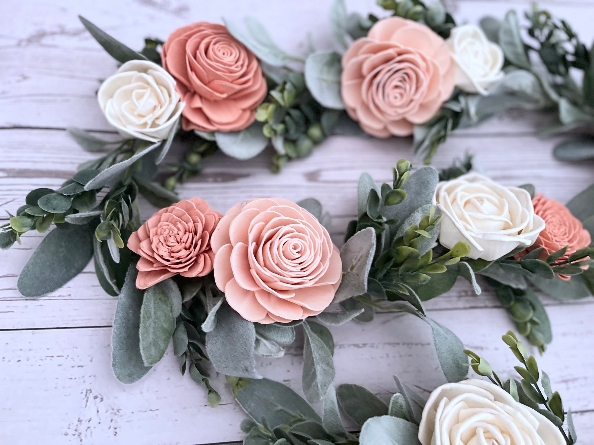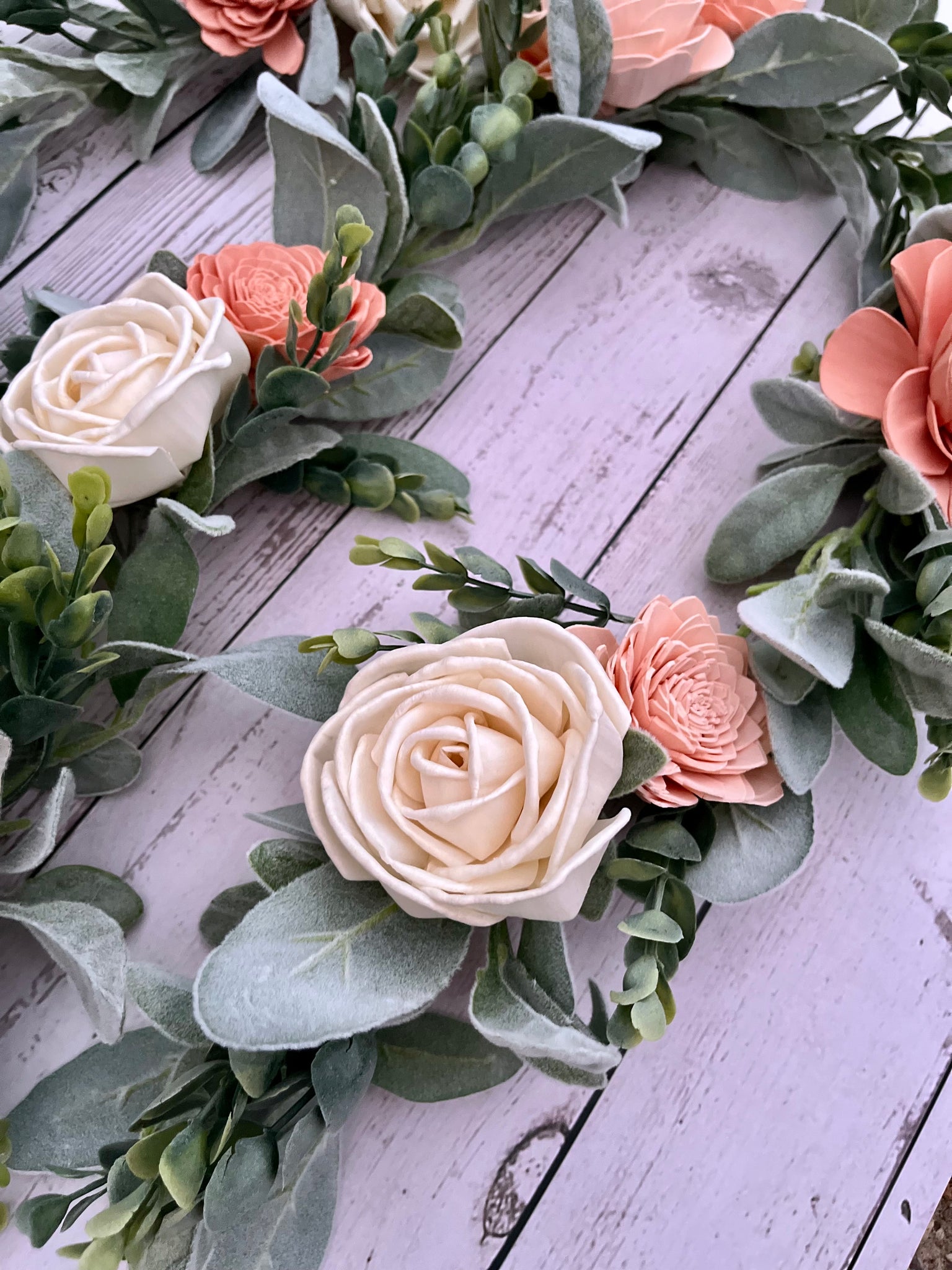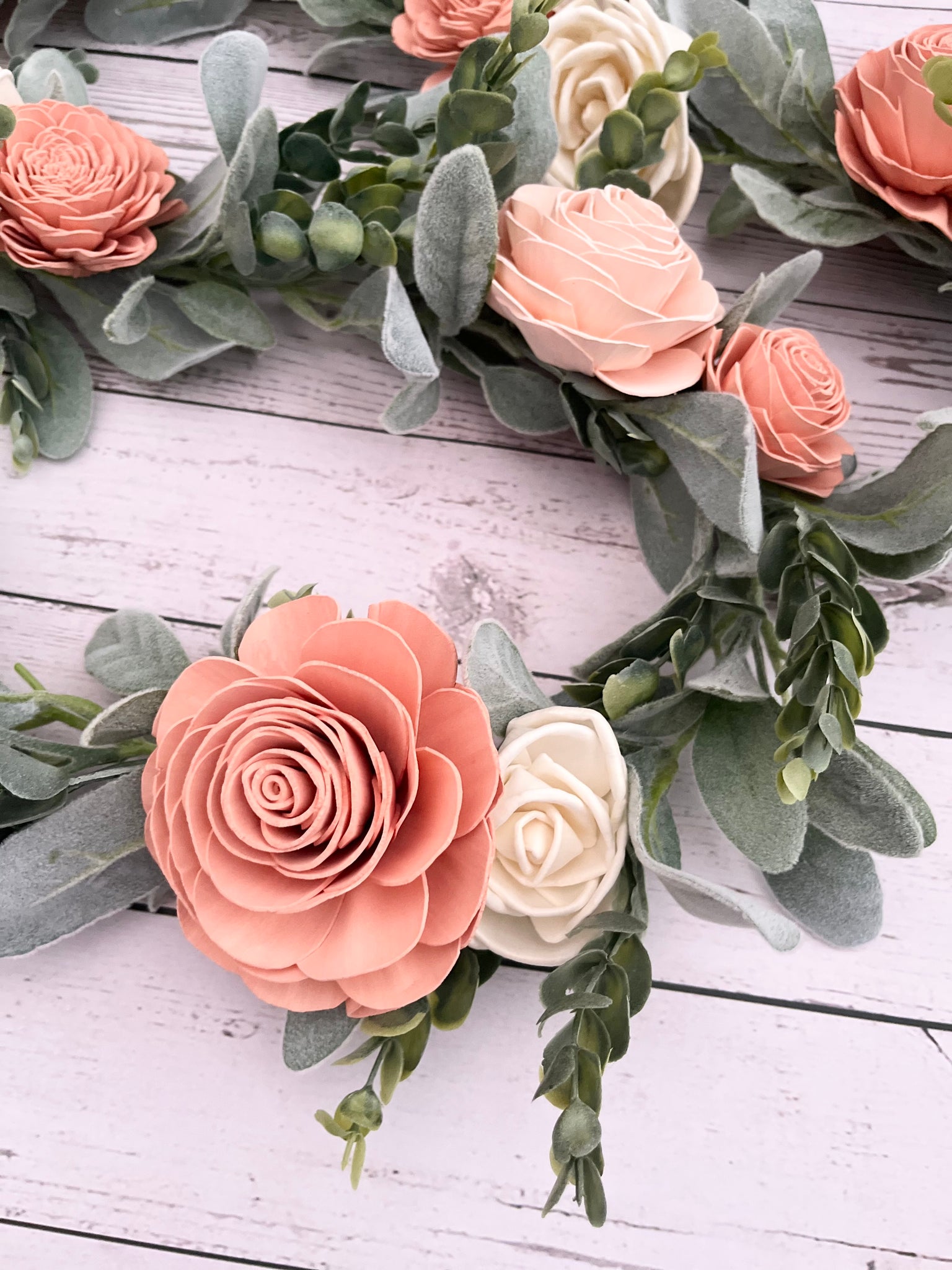 Looking for ceremony and reception decor? We'd love to make a garland (or several) with your choice of colors! All garlands will have the same greenery and flowers shown here. You can choose your colors from the chart. You're welcome to choose as many colors as you'd like!